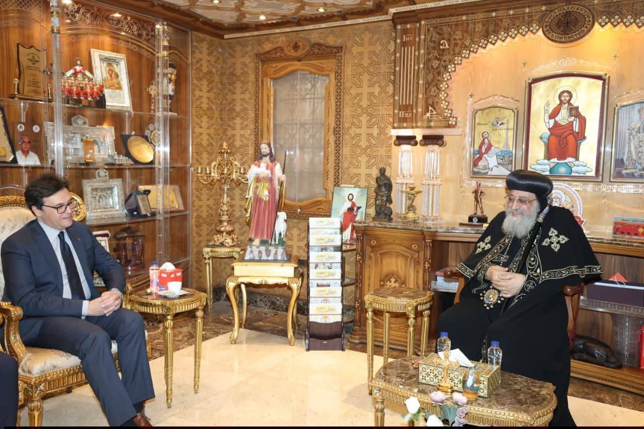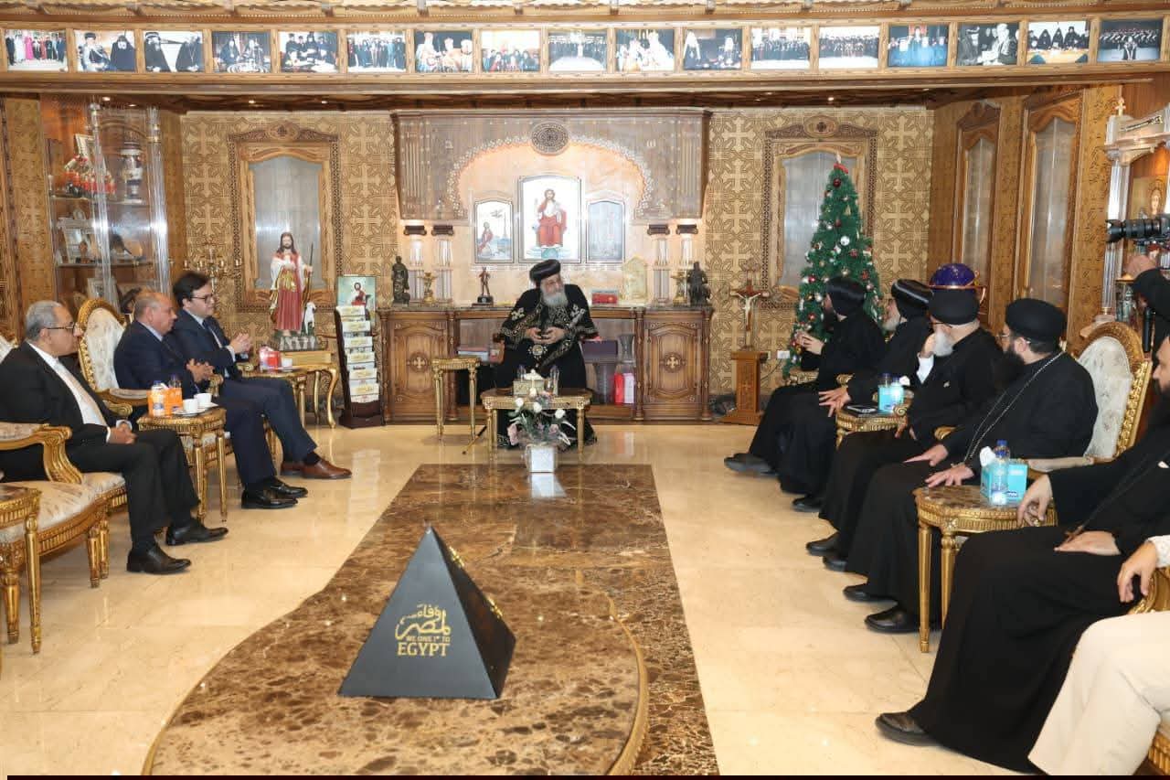 استقبل قداسة البابا تواضروس الثاني، بابا الإسكندرية وبطريرك الكرازة المرقسية، اليوم، بالمقر البابوي بالكاتدرائية المرقسية بالعباسية، الدكتور أحمد فؤاد هنو وزير الثقافة، الذي قدّم لقداسته التهنئة بمناسبة عيد الميلاد المجيد، حيث جسّد اللقاء عمق الروابط الوطنية، وبحث سُبل تعزيز التعاون الثقافي المشترك بين الوزارة والكنيسة المصرية، وذلك بحضور الأستاذ سامي عيّاد مستشار وزير الثقافة للهوية البصرية، والأستاذ أمير نبيه مستشار وزير الثقافة للتنمية المجتمعية.