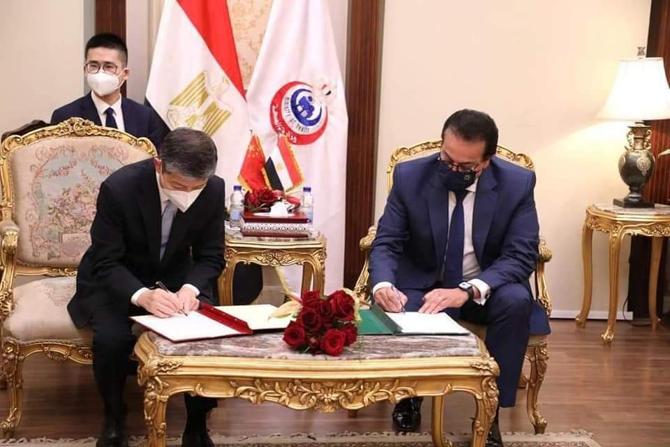 الدكتور خالد عبدالغفار والسفير الصيني يوقعان على وثيقة استلام 2 مليون جرعة من لقاح سينوفاك