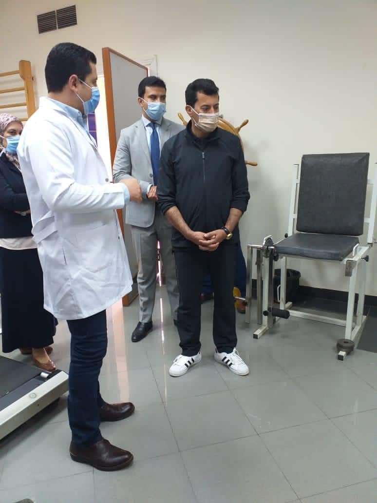 وتفقد وزير الشباب والرياضة، سير العمل فى العيادات الخارجية و أقسام العلاج الطبيعي والتأهيل والعلاج المائى والقياسات الفسيولوجيه والاسنان والعظام والباطنه والقلب والمعمل، وكذلك حمام السباحة.