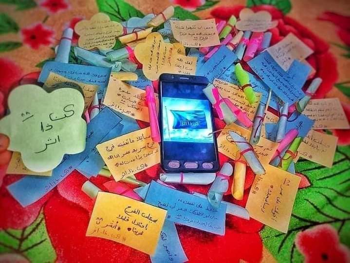 وأنا أيضا من ضمن فريق ” كن ذا اثر ” ومن ضمن مانفعله في الفريق توزيع رسائل فرحه ع الناس ، والسنة الماضية كنت ف 2ث فكنا بندعم طلبة ثانوية عامة ولكن علي السوشيال ، والواتس يعنى ندخل نطمئن عليهم بعد كل امتحان وهكذا