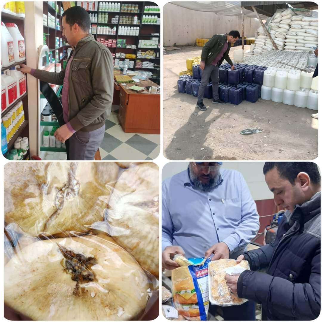 تحرير 40محضر جنح صحية و6محاضر مضبوطات بإجمالي 176 كجم من بلح جاف غير صالح للإستهلاك الآدمي (مسوس)، ومواد غذائية أخرى مجهولة المصدر .