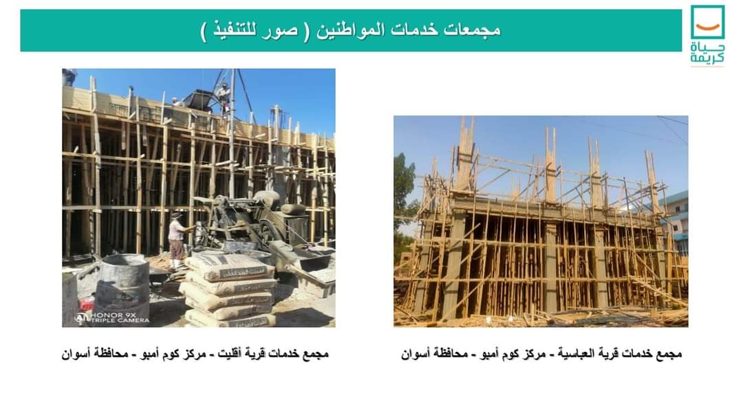 وأضاف رئيس الجهاز المركزي للتعمير، أن الأعمال بمركز كوم امبو، بمحافظة أسوان، تشمل، تطوير وتدعيم شبكات الكهرباء والإنارة العامة بجميع القرى لتحسين الخدمات المُقدمة للمواطنين فى مجال الكهرباء والإنارة العامة، وتنفيذ مجمعات ورش صناعية (تضم ورشا حرفية، ومعرضاً لمنتجات الورش) على مستوى الوحدات المحلية، وكذا إنشاء وتطوير خدمات التضامن الاجتماعى، حيث تقوم وزارة التضامن الاجتماعى بتحديد مطالب المشروعات من الوحدات الاجتماعية، ومراكز تنمية الأسرة، ومراكز التأهيل الاجتماعى، والتنسيق بشأن الأراضى المطلوبة للإنشاء الجديد ويقوم الجهاز بالتنفيذ، وإنشاء وإحلال منازل الأسر الأكثر احتياجاً بالقرى والتوابع “سكن كريم” بناء على بيان المستحقين الذى يتم إعداده من خلال وزارة التضامن الاجتماعى، بالإضافة إلى إنشاء ورفع كفاءة شبكة الطرق داخل القرى، والتى تربط القرى ببعضها لتسهيل حركة المواطنين، وسهولة الوصول للخدمات والمساهمة في تنمية القرى، ومن المخطط تنفيذ حوالى 300 كم طرق داخل المركز، وسيتم بدء العمل بها بعد الانتهاء من تنفيذ شبكات المرافق بهذه الطرق.