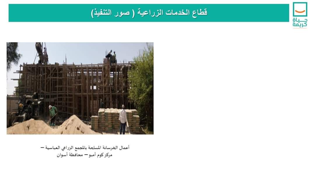 وقال اللواء محمود نصار، رئيس الجهاز المركزي للتعمير: تشمل الأعمال أيضاً إنشاء 13 كوبرى سيارات على المجارى المائية، وتطوير وتوسيع 7 كبارى سيارات، حيث يتم تحديد الأعمال بالتنسيق مع المختصين من وزارة الرى، بما يحقق تنفيذ الأعمال المطلوبة، وعدم تأثر المجارى المائية بهذه الأعمال، وتحقق الكبارى الربط المطلوب بين أجزاء القرية الواحدة، وبين القرى وبعضها، بجانب إنشاء 9 نقاط إسعاف، وتطوير 3 نقاط إسعاف أخرى لتحسين خدمات الإسعاف المُقدمة للمواطنين، بالإضافة إلى إنشاء 9 مجمعات للخدمات الزراعية، وتُنفذ على مستوى الوحدات المحلية لتقديم الخدمة لباقى القرى والتوابع بالوحدة المحلية، وتضم (وحدة بيطرية – جمعية زراعية – مركز تجميع ألبان – مركز إرشاد) بما يساهم في تنمية هذه القرى.