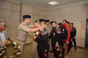 وكان فى إستقبال البعثة المصرية فور وصولها إلى أرض الوطن وفد من جهاز الرياضة للقوات المسلحة