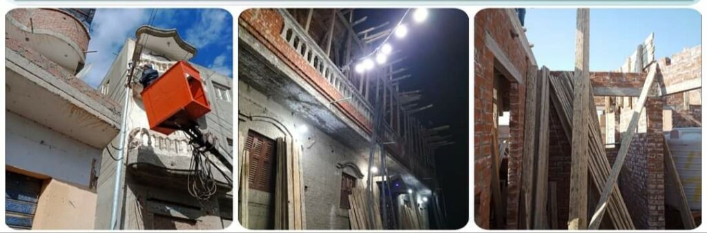 متابعة أعمال صيانة كشافات وأعمدة الإنارة .