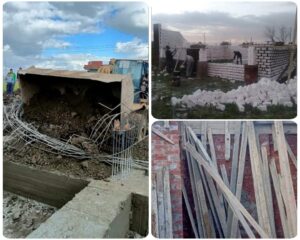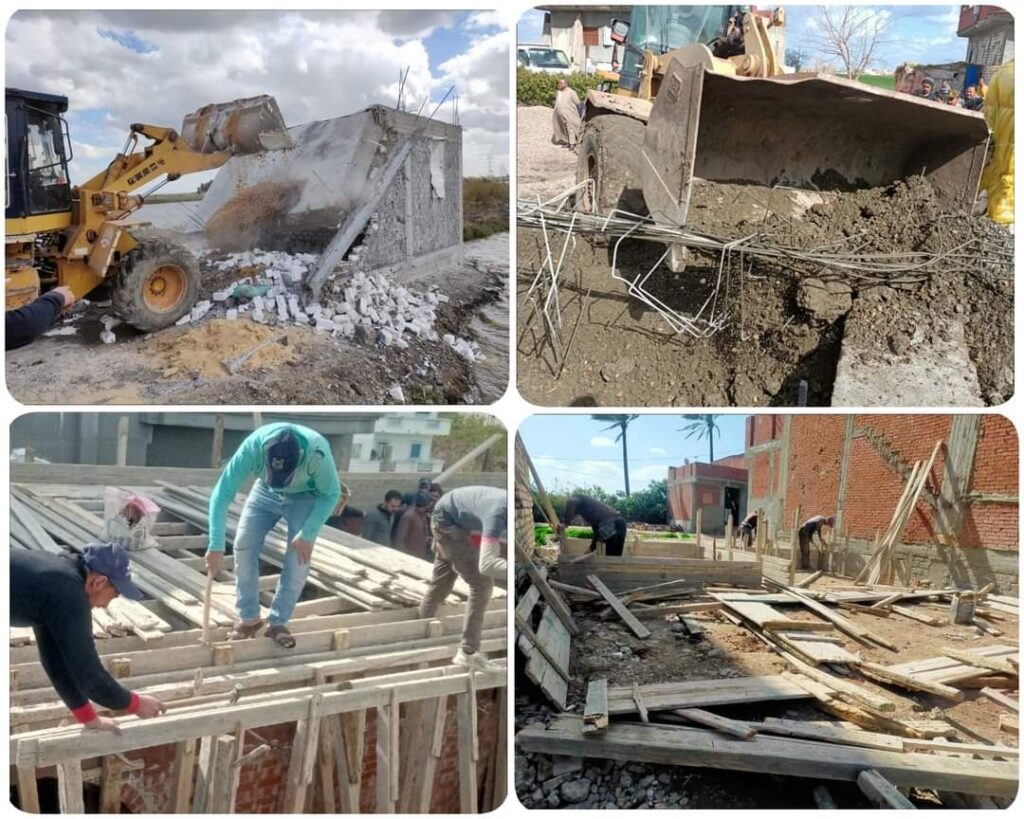 إيقاف أعمال وإزالة ثلاث مباني بالطوب الأبيض على مساحة 350م2 بدسونس أم دينار بدمنهور .