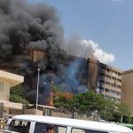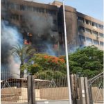علي الفور تم توجيه ١٠ سيارات اطفاء الى مكان البلاغ ، وتم اخلاء المبنى من الموظفين والمواطنين بعد ان تصاعدت الادخنة من داخل المبنى .