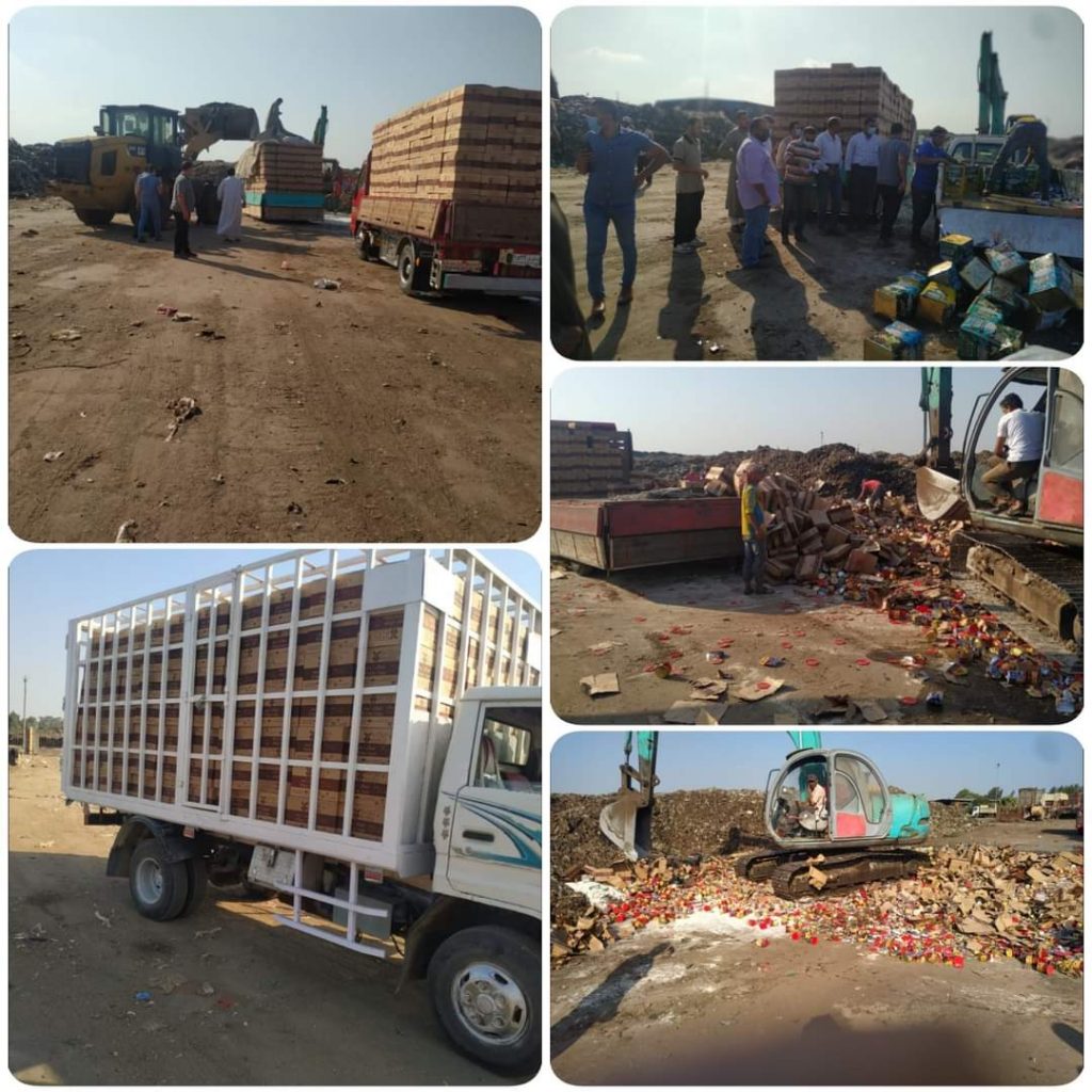 حيث تم إعدام 34000 عبوة شوفان مكملات غذائية منتهية الصلاحية باجمالى 18طن و1800 كجم جبنة، و8000 عبوة مواد غذائية منتهية الصلاحية .