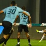 أهداف الفارس الأبيض جاءت عن ” مصطفى فتحى ، أشرف بن شرقى ، محمد أوناجم ” ، ففى الدقيقة الخامسة و الثلاثين من عمر المباراة و من تمريرة عرضية من المدافع ” حمزة المثلوثى ” و من رأسية المدافع ” محمود علاء ” ترتطم الكرة بالقائم ليتابعها المهاجم ” مصطفى فتحى ” و يسكنها فى الشباك معلناً عن أولى أهداف المباراة ، و لم تمر سوى دقيقة واحدة ليسجل ” أشرف بن شرقى ” الهدف الثانى من خلال متابعة لتسديدة ” مصطفى فتحى ” المنفرد فيها بمرمى الحارس ” محمود رضا ” و التى إرتطمت بالعارضة فى الدقيقة السادسة و الثلاثين من عمر المباراة .