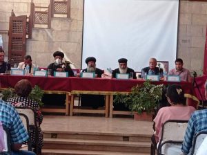 مع نيافة الحبر الجليل الانبا أرميا تم إفتتاح ملتقي فناني الأيقونة القبطية حيث تشرفت لجنة التراث القبطي بالمجمع المقدس بالمشاركة مع رابطة فناني الأيقونة القبطية ورئيسها الأستاذ جورج ناعوم في ندوة عن سمات الأيقونة القبطية ، جمعت المتخصصين ، رتب لها قدس ابونا صليب جمال سكرتير لجنة التراث القبطي بكنيسة أبي سفين مصر القديمة هذا اليوم السبت 9 أكتوبر 9.5ص ذلك من اجل تقويم أداء الفن القبطي ونعلن تمسكنا بهويتنا القبطية .