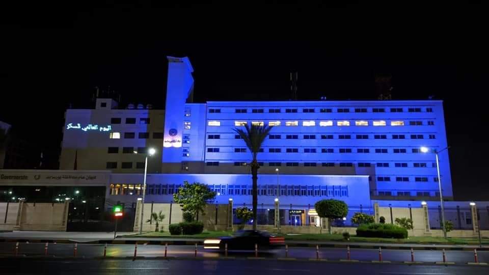 إنارة مبنى الديوان العام لمحافظة بورسعيد وميدان الشهداء، مساء اليوم الخميس، باللون الأزرق إحتفالا باليوم العالمي لمرضى السكري للعام الثاني على التوالي، تحت رعاية محافظ بورسعيد اللواء أ.ح عادل الغضبان، ومدير هيئة الرعاية الصحية ببورسعيد الدكتور مصطفى شعبان، وحملة ” سكرك موترك .. في إيدك تسيطر”.
