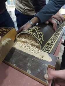 وبتفتيش الطرود تبين وجود كمية من الأقراص المخدرة مخبأة بحرفية شديدة داخل الحليات والقوائم الخشبية والتجاويف الفارغة بالمشمول بوزن إجمالي ١٢٩ كيلو و٨٦٠ جرام من أقراص مخدر الكبتاجون.