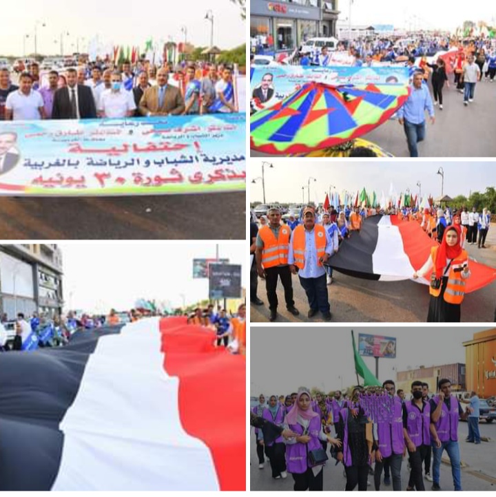 احتفالاً بالذكرى التاسعة لثورة 30 يونيو محافظ الغربية يشهد انطلاق مسيرة شبابية ل 1000 شاب وفتاة.
