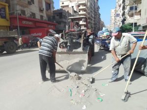 فقد استمر تنفيذ اعمال الحملة المكبرة للنظافة وكنس الشوارع والميادين لرفع القمامة والاتربة بنطاق مدينة المنصورة وضواحيها