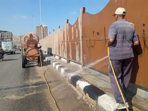 غسيل الارصفه بشارع الجيش وعبد السلام عارف و المشايه و تقليم الأشجار بالجزر الوسطي بشارع الجيش والحدائق العامه بالمجزر وحديقة شجره الدر