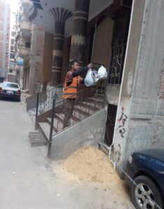 علي المتابعة المستمرة لرفع الاتربة والقمامة من الشوارع والصيانة المستمرة للحدائق العامة وتطهير اماكن تجميع الاتربة والقمامه بعد رفعها أولا بأول.