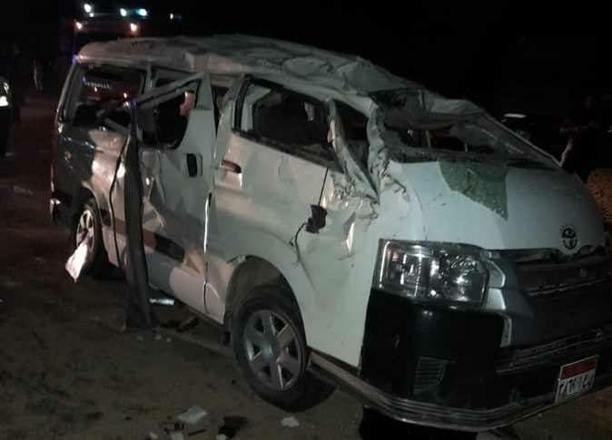 مصرع وإصابة 14 شخصاً في حادث انقلاب سيارة ميكروباص بطريق الكريمات