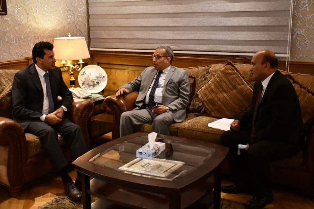التقي الدكتور أشرف صبحي وزير الشباب والرياضة، بالدكتور الأستاذ أحمد كمال نائب رئيس جامعة جنوب الوادي لشئون البيئة، ممثلا عن السيد الدكتور يوسف الغرباوي رئيس جامعة جنوب الوادي،لبحث اخر استعدادات جامعة جنوب الوادي لاستضافة البطولة العربية للجامعات لخماسيات الكرة، والتي من المقرر لها ان تنطلق في شهر نوفمبر المقبل، بحضور الاستاذ الدكتور بدوي شحات نائب رئيس الجامعة لشئون الطلاب.