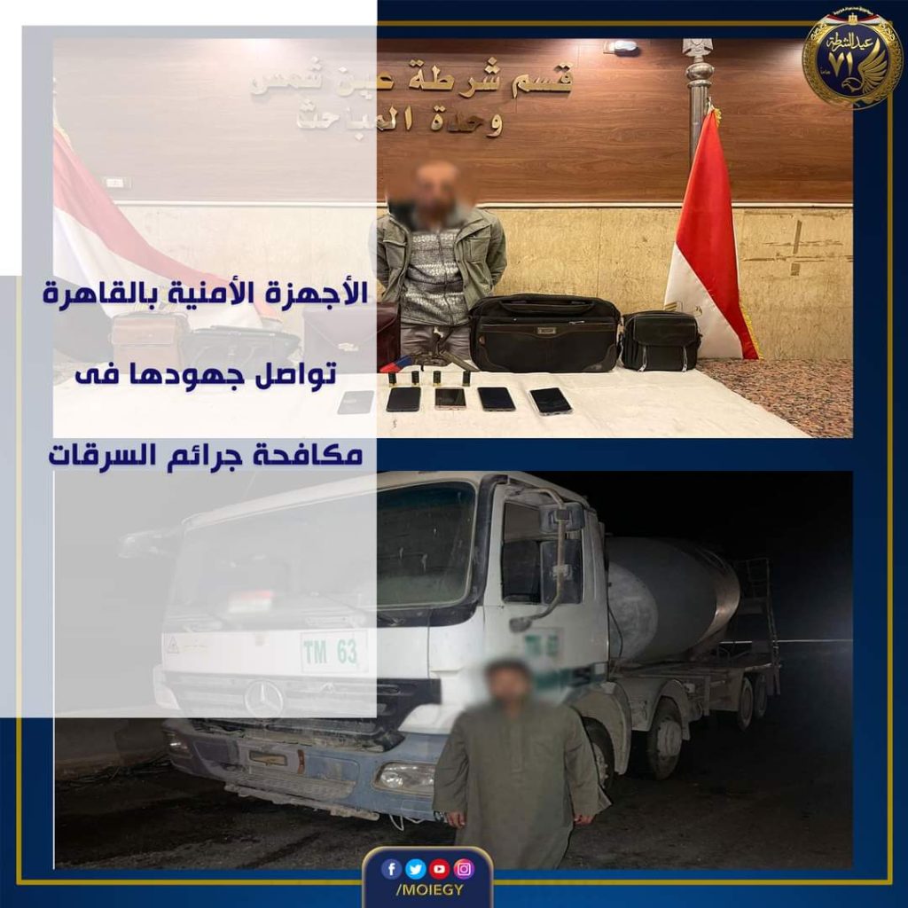 ضبط (سائق بإحدى الشركات – مقيم بدائرة قسم شرطة بدر) لقيامه بسرقة سيارة خاصة بالشركة عمله ” نقل خلاطه ” من داخل أحد المواقع بدائرة قسم شرطة التجمع الأول ، وبمواجهته إعترف بأنه نظراً لطبيعة عمله كسائق بالموقع محل البلاغ ، وعلمه بكيفية تشغيل السيارات المتواجدة بالموقع ، وأماكن إخفاء الشفرات الإلكترونية الخاصة بتشغيلها خطط لسرقة إحداها ، وفى سبيل ذلك تحصل على الشفرة الخاصة بالسيارة المستولى عليها وحاول تشغيلها إلا أنه إكتشف عطل البطاريات الخاصة بها فإستولى على عدد (2) بطارية من سيارة أخرى وتمكن من تشغيل السيارة ولاذ بالفرار ، وقام بتعطيل جهاز التتبع الخاص بالسيارة وإخفائها بمحور 30 يوليو-فيصل/السويس تمهيداً للتصرف فيها بالبيع ، كما تم بإرشاده ضبط السيارة المستولى عليها بمكان إخفائها.
