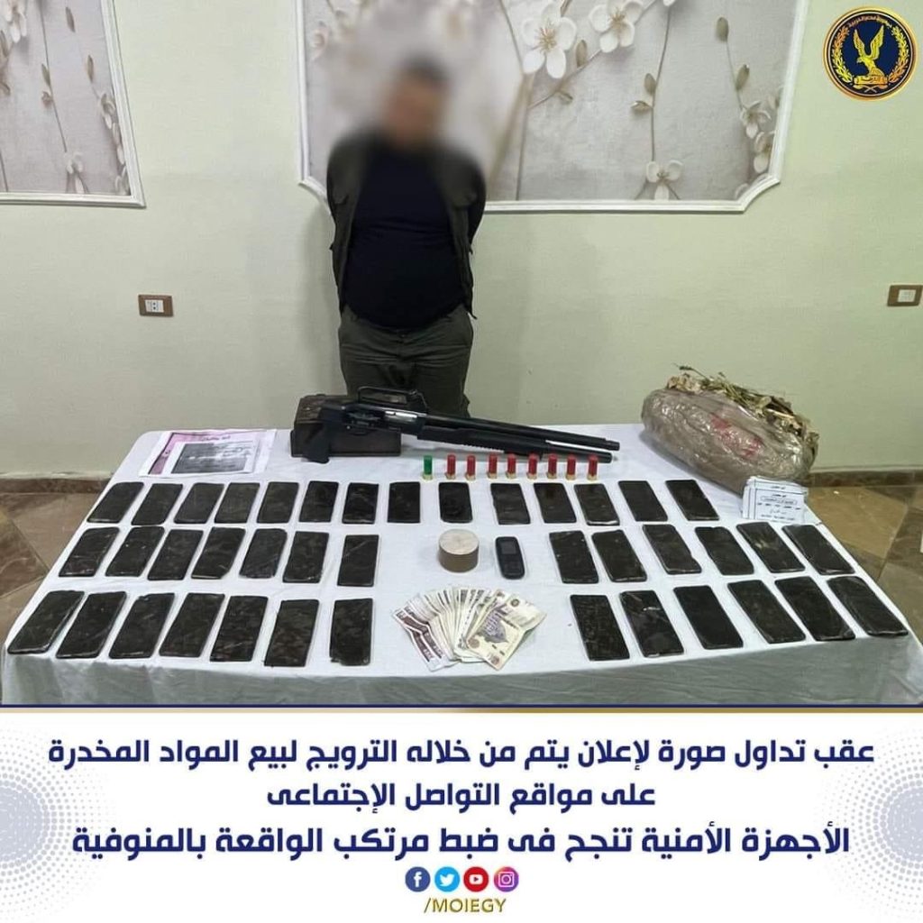 الأجهزة الأمنية تلقى القبض على شخص يدعي ابو كيان أثناء ترويج إعلان لبيع المواد المخدرة بمحافظة المنوفية