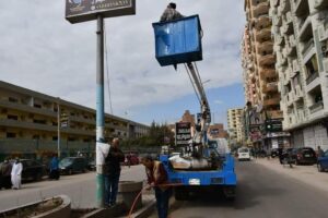 وصيانة الأرصفة المتهالكة بمختلف الشوارع، كما وجه المحافظ بسرعة رفع الإعلانات التالفة والمخالفة من شوارع جمال عبد الناصر والنبوي المهندس وسعد زغلول،