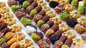 10. . شكلي قطع بيتي فور بطعم الشوكولاتة وضعيها متباعدة في الصواني. ضعي قطعة بيتي فور بيضاء مع بيتي فور الشوكولاتة كي تعرفي وقت نضج البيتي فور