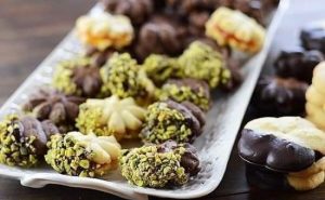 13. . زيني قطع البيتي فور بالشوكولاتة المذابة والمكسرات.
