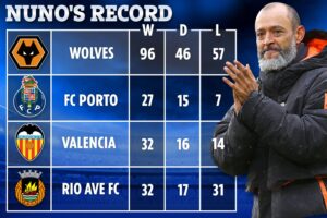 سجل نونو سانتو مع الأندية التي تولى قيادتها: