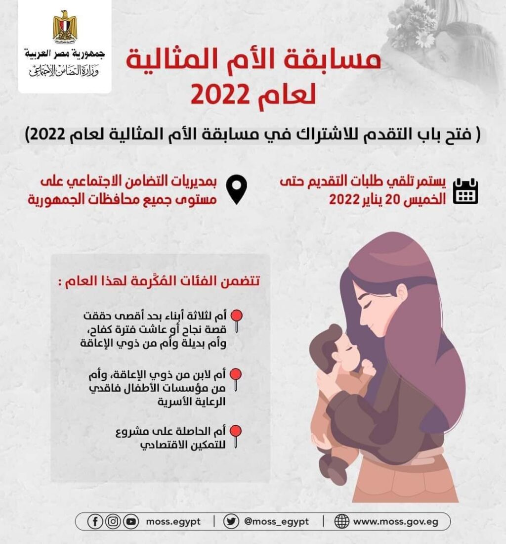 التضامن تعلن غلق باب التقدم لمسابقة الأم المثالية لعام 2022 الخميس المقبل 20 يناير