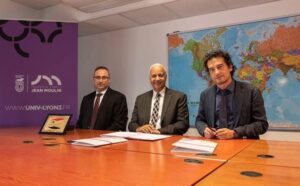 تتويجاً للمباحثات التي قام بها د. خالد عبدالغفار وزير التعليم العالي والبحث العلمي خلال زيارته لفرنسا في شهر مايو الماضي، وقع د. عصام الكردي رئيس جامعة العلمين الدولية، ود.. إيرك كاربانو رئيس جامعة ليون ٣ الفرنسية أمس الأربعاء اتفاقية شراكة بين الجامعتين، والتي بموجبها يتم منح درجات وشهادات مشتركة ومزدوجة بين الجامعتين من خلال تقديم برامج جامعة ليون ٣ بجامعة العلمين الدولية.