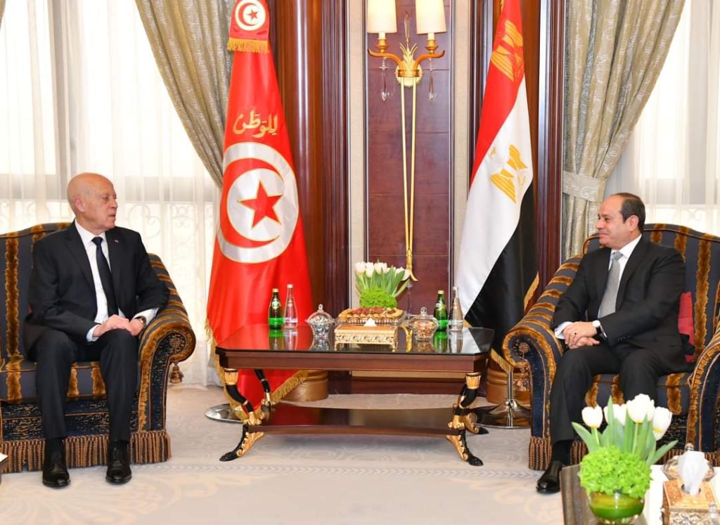 من جانبه؛ أكد الرئيس التونسي اعتزاز بلاده بما يربطها بمصر من روابط وعلاقات وثيقة على المستويين الرسمي والشعبي، مثمناً ما حققته مصر خلال السنوات الماضية على الصعيد الداخلي من إنجازات في مجالات الأمن والاستقرار والتنمية،