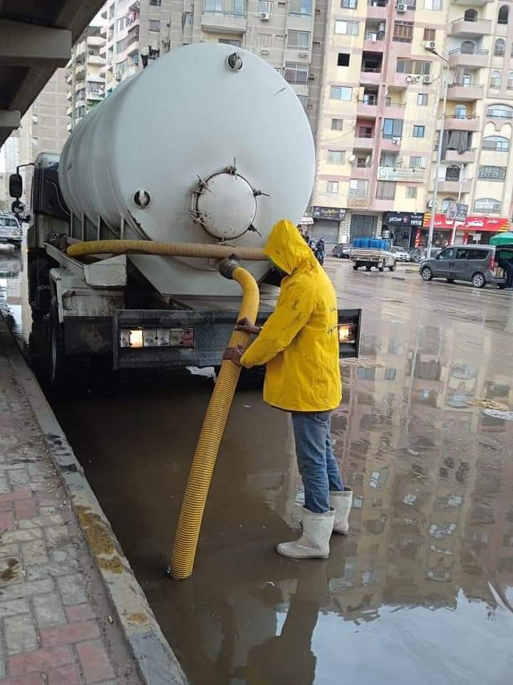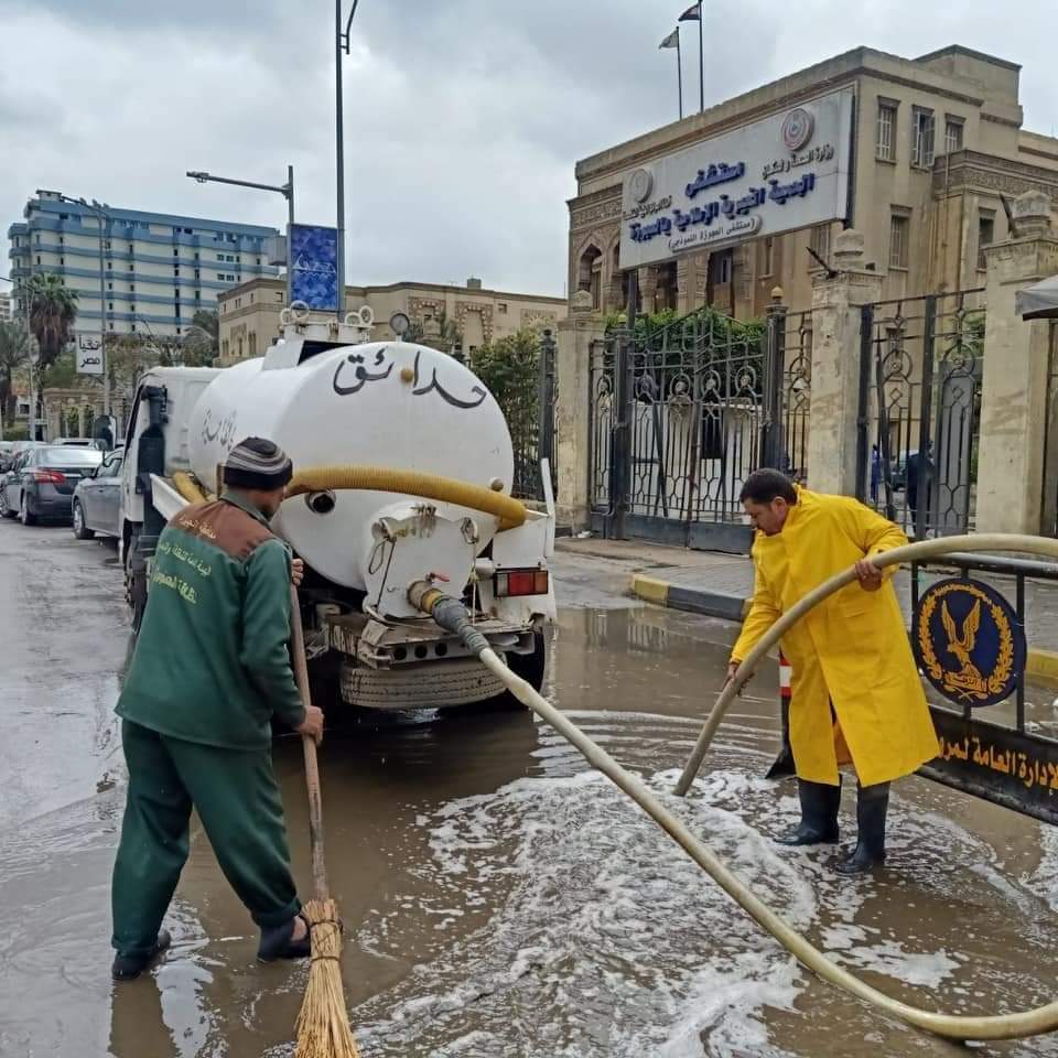 الجيزة : تدفع بمعدات الشفط لرفع اثار الامطار من البؤر الساخنه
