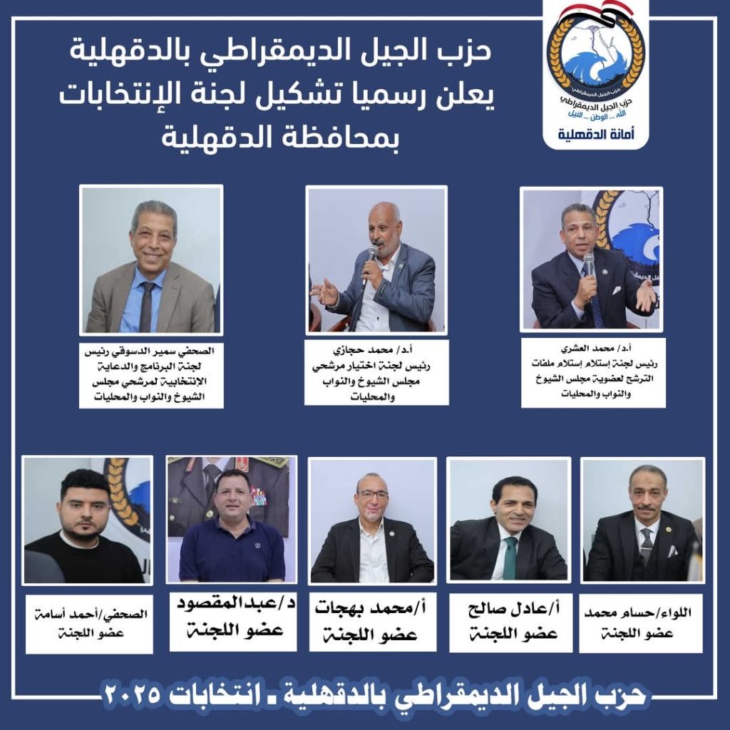 الجيل الديمقراطي بالدقهلية يعلن التشكيل الرسمي الجديد للجنة الإنتخابات بالأمانة العامة لمحافظة الدقهلية