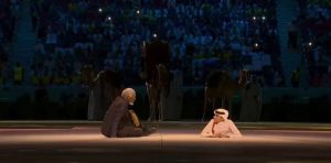 حفل بسيط كان عنوانه ” الحالمون ” على أرض قطر و الذى بدأ بالآية الكريمة حين إلتقى ” مورجان فريمان ” مع الشباب القطري و سفير النوايا الحسنة ” غانم المفتاح ” معبرين عن الإختلاف البشري و السنة الكونية التى وضعها المولى ” عز وجل ” لعباده فى الأرض ، ثم بدأت فقرة من الأغانى التراثية القطرية ثم أغانى النسخ السابقة من المونديال .