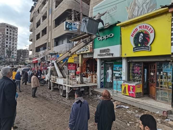 الحملات المكثفة لمراجعة الإعلانات بالشوارع والميادين لإزالة الإعلانات العشوائية والغير مرخصة بمركز شربين