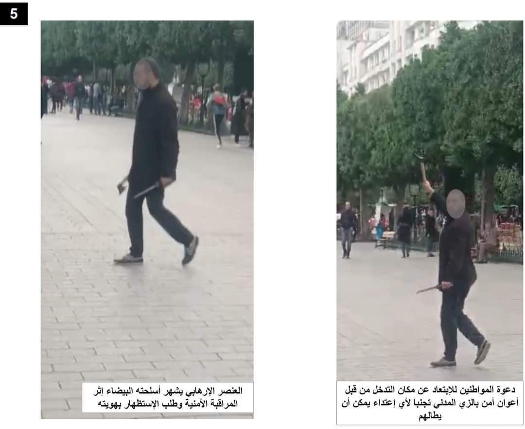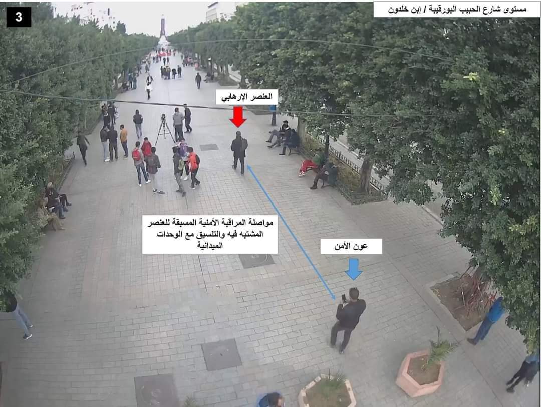 قالت وزارة الداخلية التونسية إنه بمراجعة التسجيلات والمعاينات الفنية المتعلقة بالحادث الذي وقع في شارع الحبيب بورقيبة وسط العاصمة يوم أمس (الجمعة)، تبين أن التفاصيل تتمثل في كونه تم الاشتباه في شخص ملتحي ويحمل حقيبة على كتفه مما أثار ريبة أفراد الأمن الذين قاموا بمتابعته.