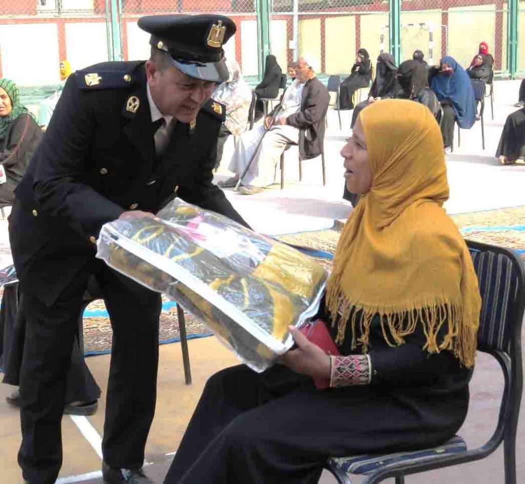 حيث تم تنظيم عدة قوافل لتوزيع عدد من المساعدات العينية (بطاطين – مواد غذائية) بالمجان على المواطنين بنطاق مديريات الأمن على مستوى الجمهورية.