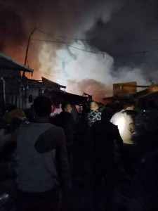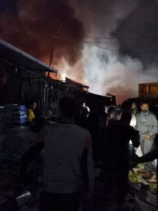 كوادر الاطفاء في مديرية دفاع مدني شرق عمان وبإسناد من مديرية دفاع مدني وسط عمان تتعامل فجر اليوم مع حريق أتى على عدد كبير من المحلات والبسطات بمنطقة مجمع رغدان
