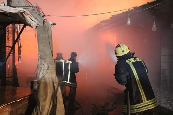 الدفاع المدني يخمد حريق عدد كبير من المحلات والبسطات في العاصمة الأردنية