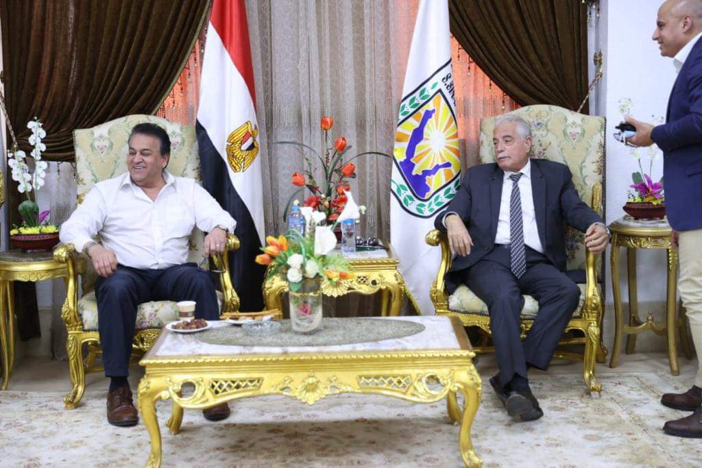 التقى الدكتور خالد عبدالغفار، وزير التعليم العالي والبحث العلمي والقائم بأعمال وزير الصحة والسكان، اللواء خالد فودة، محافظ جنوب سيناء، اليوم الخميس، بمقر ديوان عام المحافظة.
