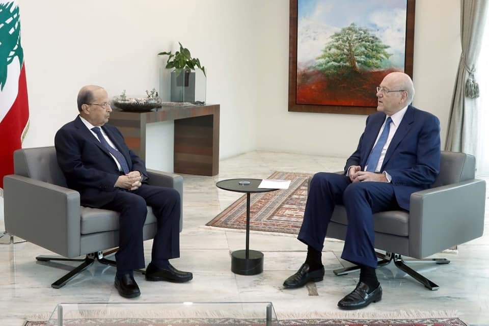 جاء ذلك أثناء انعقاد اللقاء الرابع عشر بين عون وميقاتي في قصر الرئاسة وذلك منذ تكليف ميقاتي بتشكيل الحكومة في السادس والعشرين من شهر يوليو الماضي.