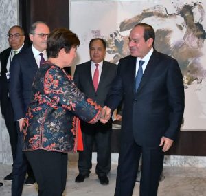 جاء ذلك خلال استقبال الرئيس السيسي بمقر إقامته بدبي، كريستالينا چورچييڤا، المدير التنفيذي لصندوق النقد الدولي وذلك عقب وصول الرئيس مساء اليوم /الخميس/، إلى دولة الإمارات الشقيقة، للمشاركة في قمة المناخ (كوب 28).