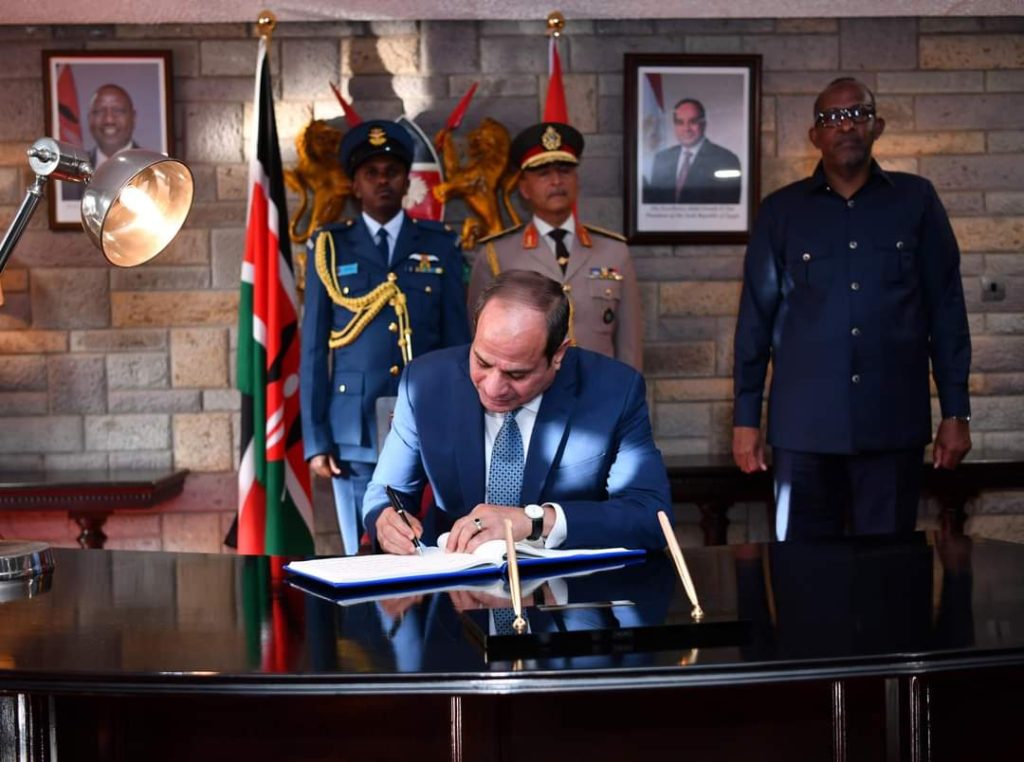 وجه الرئيس عبدالفتاح السيسي كلمة اليوم للرئيس الكينى ويليام روتو وشعب كينيا الشقيق في سجل الزائرين بمستهل زيارته للعاصمة الكينية نيروبى للمشاركة في القمة التنسيقية للاتحاد الإفريقي والتجمعات الاقتصادية الإقليمية.