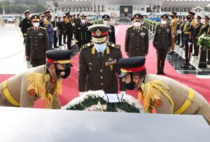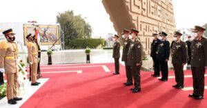 وقادة الأفرع الرئيسية بوضع باقة من الزهور على النصب التذكارى للجندى المجهول