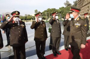 الرئيس عبد الفتاح السيسى رئيس الجمهورية القائد الأعلى للقوات المسلحة يُنيب الفريق أول / محمد زكى لوضع إكليل الزهور على النصب التذكارى لشهداء القوات المسلحة