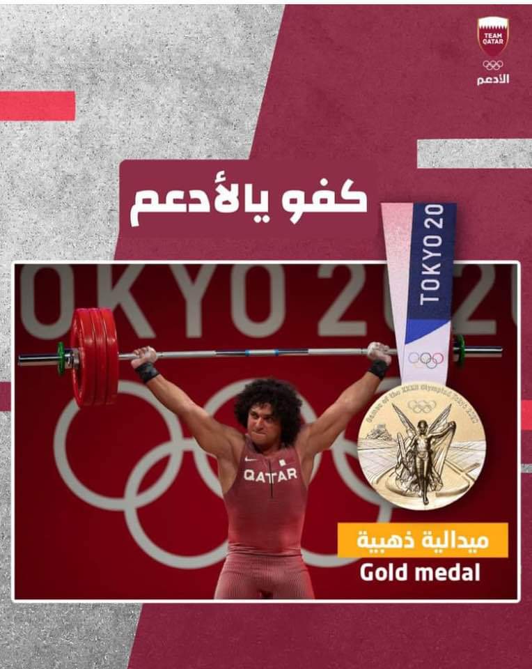 الرباع القطري ذو الاصول المصريه يهدي قطر اول ميداليه ذهبيه في تاريخها في رفع الاثقال في اوليمبياد طوكيو