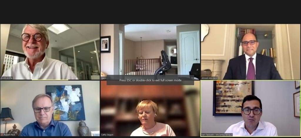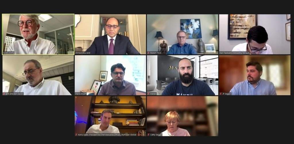 جاء ذلك خلال كلمة ألقاها السفير أمام الاجتماع الشهري لمجلس إدارة مجلس الأعمال الكندي العربي عبر الفيديو كونفرانس، وبناءً على دعوة من المجلس، الذي يضم رؤساء مجالس إدارات ومسئولي كبرى الشركات الكندية المستثمرة في الشرق الأوسط والدول العربية، والراغبة في الاستثمار،