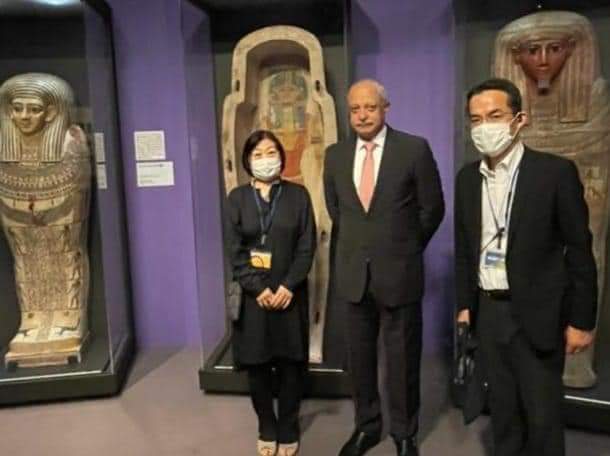 السفير المصري في طوكيو يقوم بزيارة لمعرض الآثار الفرعونية المقام بالعاصمة طوكيو
