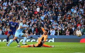 لتصل الملحمة الأوروبية إلى ذروتها من الإثارة و المتعة و التشويق على أرضية الملعب فهجمة هنا و هجمة هناك حتى الدقيقة الرابعة و السبعون من عمر المباراة و مراوغة من المدافع الأوكراني ” أولكساندر زينشينكو ” ليلقى الكرة إلى النجم ” برناردو سيلفا ” و الذى نجح فى ضرب الكرة فى الشباك معلناً عن رابع الأهداف للسيتيزن فى المباراة ، ثم جاء المدافع ” إيميريك لابورت ” ليضع المان سيتى فى مأزق بعد أن تسبب فى ركلة جزاء للريال بعد لمس الكرة ليديه ليقبل ” بنزيما ” هدية ” لابورت ” و يسجل الركلة فى الشباك معلناً عن ثالث الأهداف للميرينجي فى الدقيقة الحادية و الثمانين من عمر المباراة ، لتمر بعدها دقائق المباراة دون أي جديد ، و تنتهى الملحمة الأوروبية بإنتصار للمان سيتى و إعطاء الفرصة للريال من أجل التعويض فى مباراة الإياب على ملعب ” سانتياجو بيرنابيو ” بالعاصمة الإسبانية مدريد فى يوم الأربعاء الموافق الرابع من مايو المقبل .