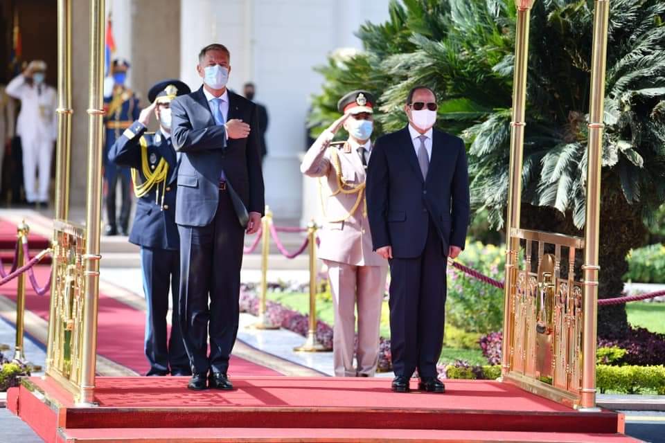 استقبل السيد الرئيس عبد الفتاح السيسي اليوم بقصر الاتحادية الرئيس كلاوس يوهانس، رئيس جمهورية رومانيا، حيث تم إجراء مراسم الاستقبال الرسمي وعزف السلامين الوطنيين واستعراض حرس الشرف”.